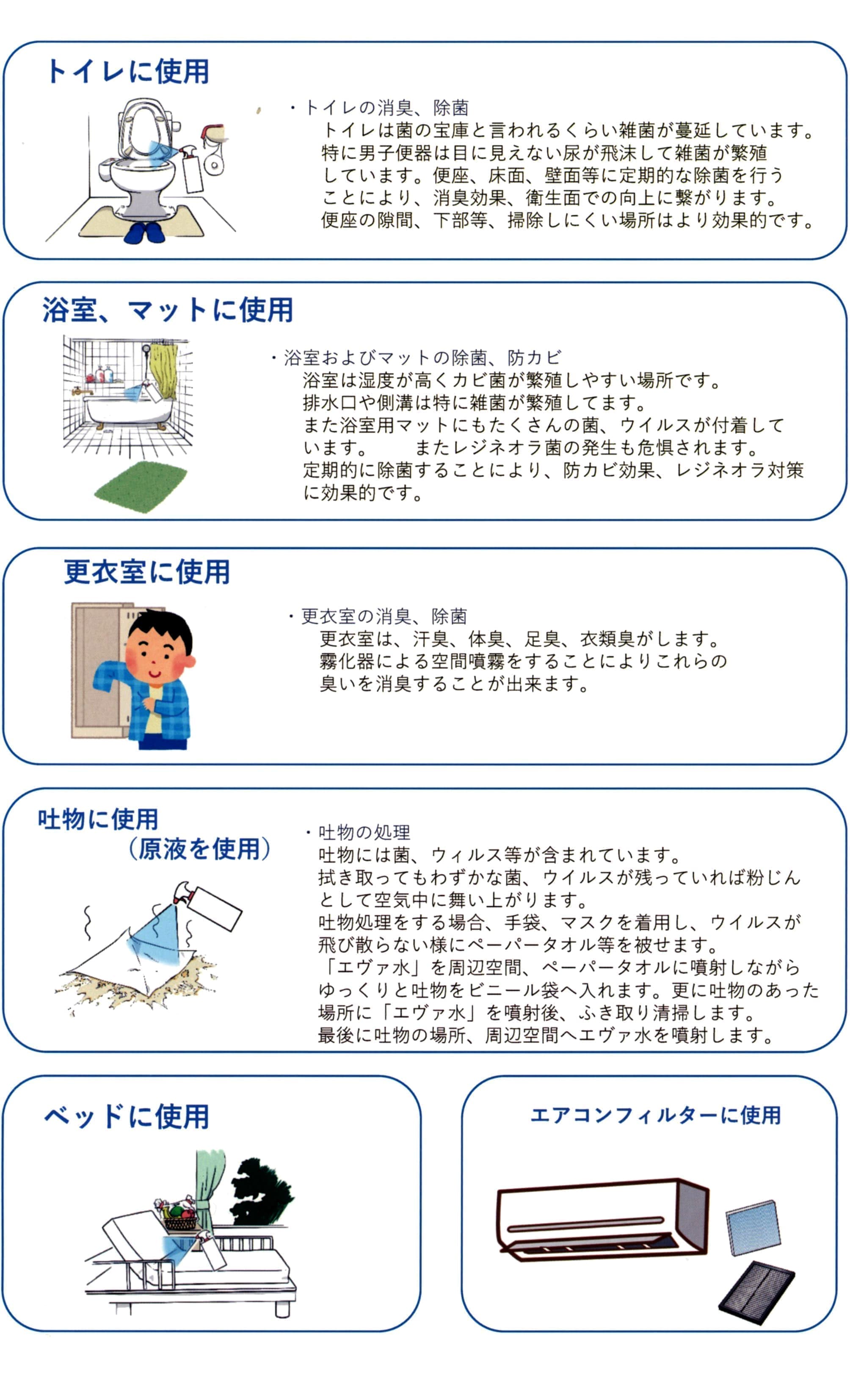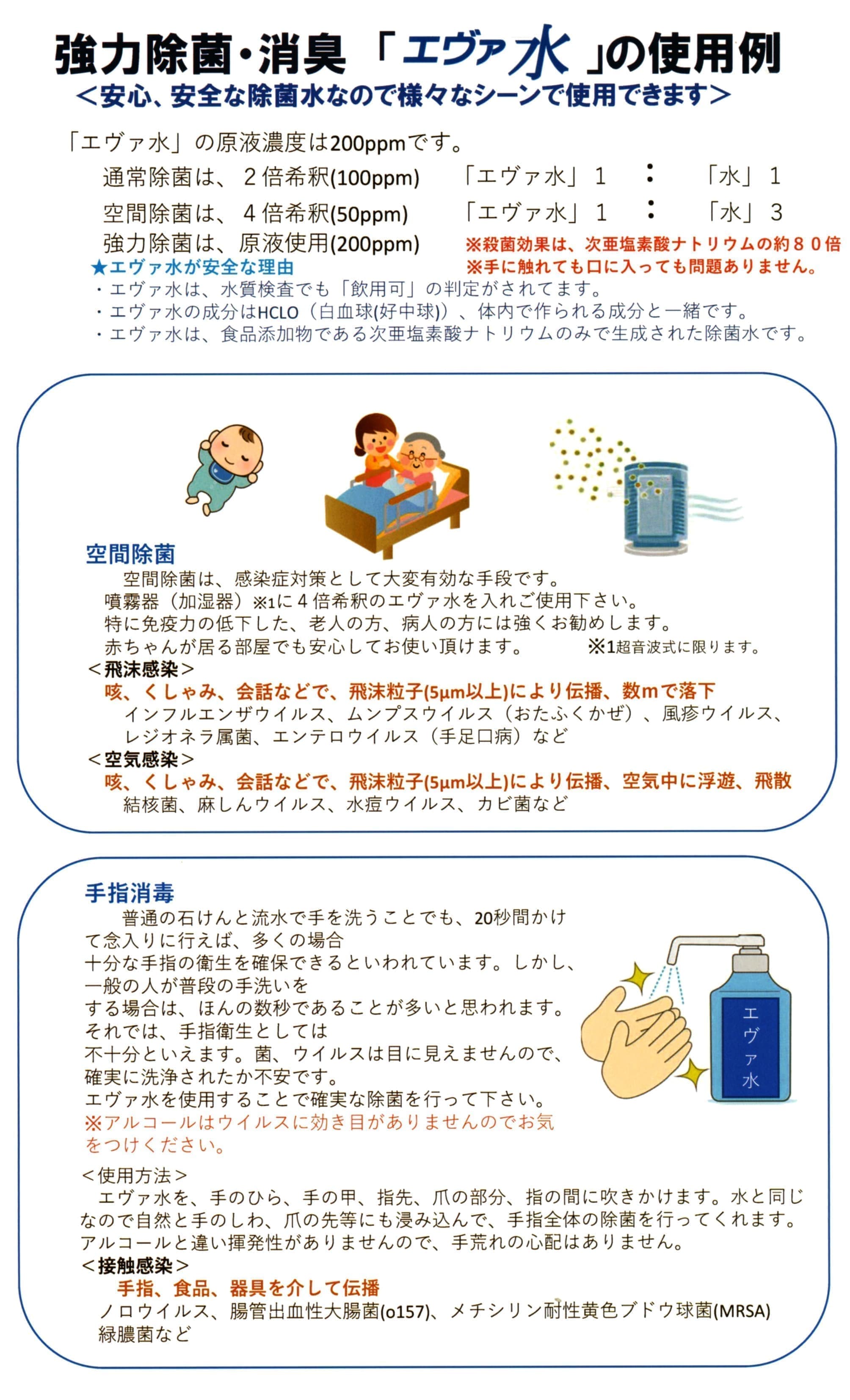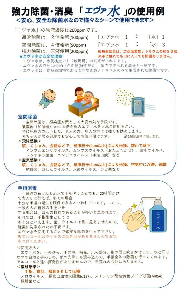 *うがい、洗顔、携帯スプレー容器にいれて、マスクの両面にスプレー、鼻・口内にもスプレーしましょう。色々工夫して活用されたし!