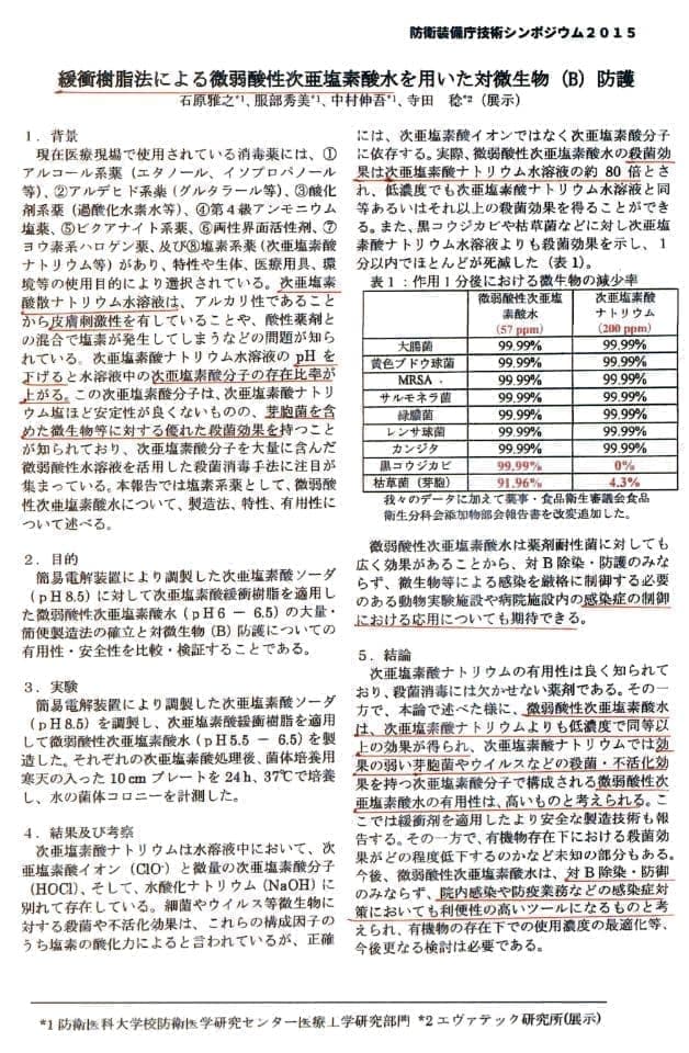有効塩素濃度35ppm以上、pH6・5以下の次亜塩素酸水が新型コロナウイルスを99・99%以上、不活性化させるという研究結果を、「独立行政法人製品評価技術基盤機構(NITE)」が発表していることは、昨日の当欄で紹介した。