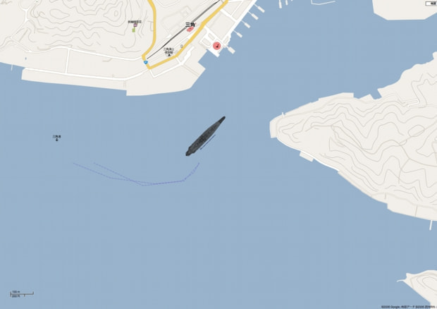 大和ミュージアムと三角を飛行艇で結ぶ。