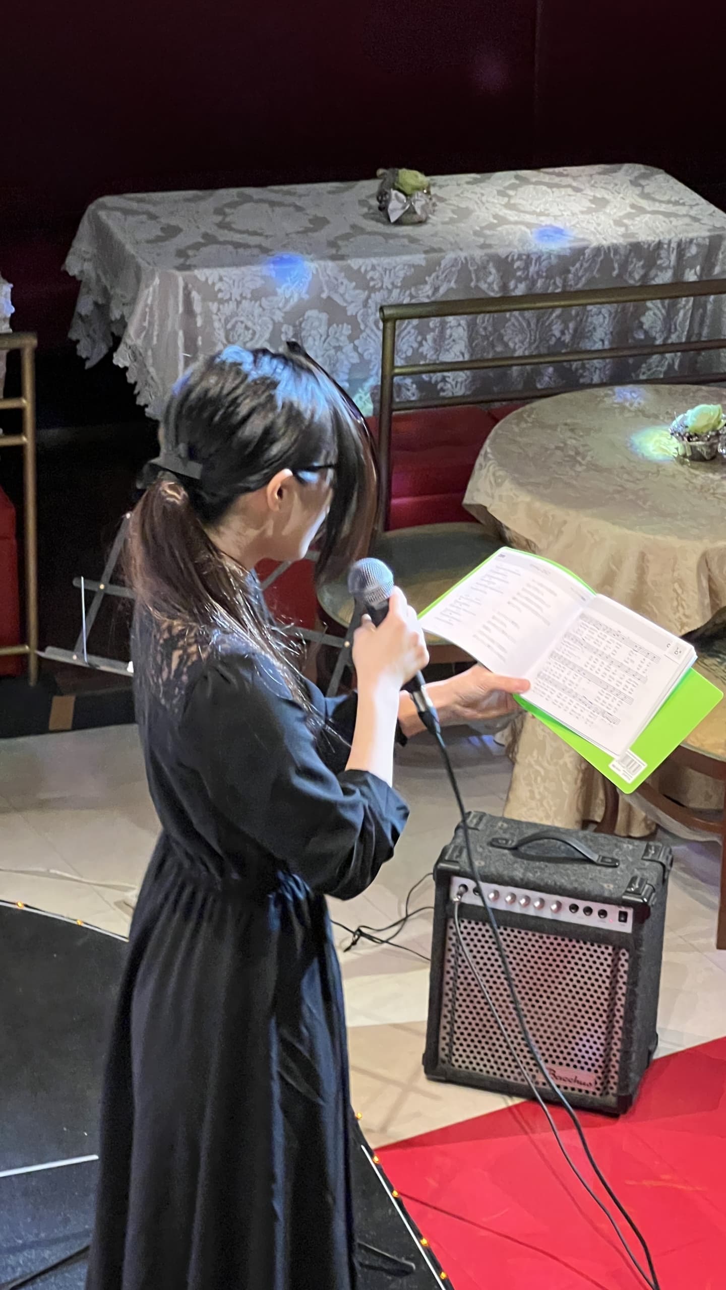 女性の歌い手さんがギターを伴奏に歌ってくれます♪23日の木曜の夜は #コンカフェ も営業予定です!もちろん #DJ や #ゲーム もやりますよ🎮 #熊本 #ライブ #イベント #アイドル #アニソン